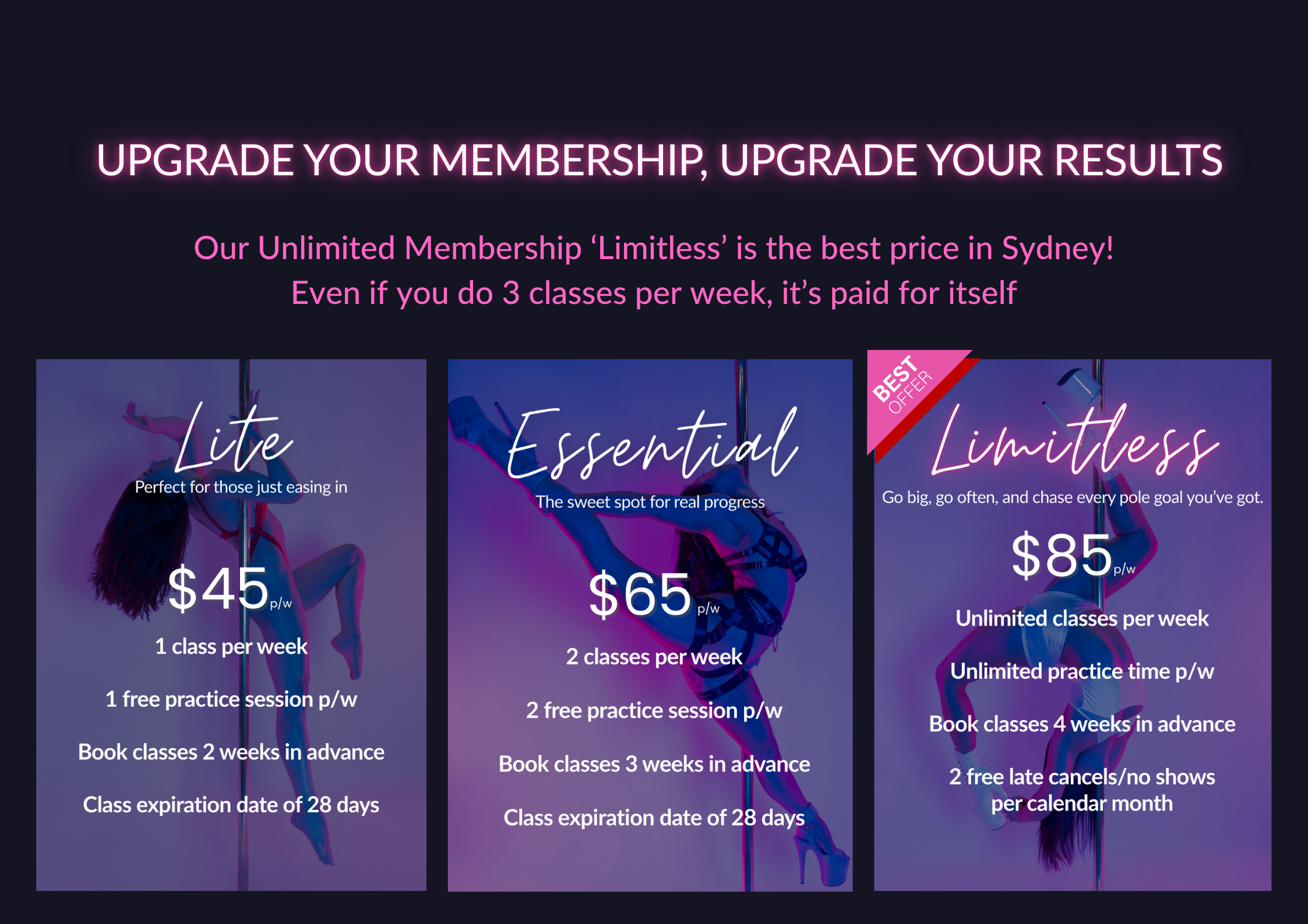 Our Limitless Membership is the best value for Pole, Aerials, Flexibility, Strength & more in Sydney!